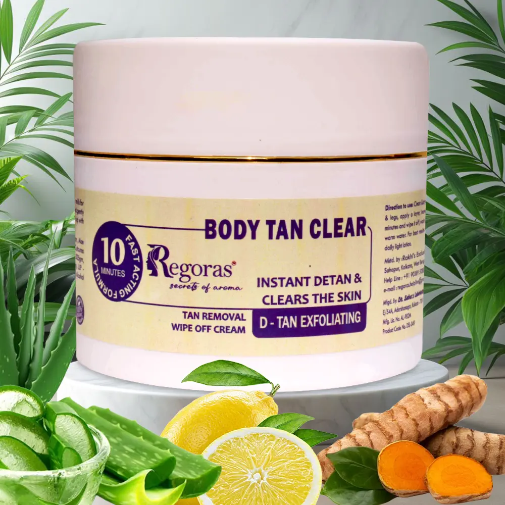 Body Tan Clear is a powerful Ayurvedic D-Tan formula designed to remove stubborn tan, dullness, Purifies skin and impurities caused by sun exposure and pollution. Enriched with time-tested herbal ingredients, it gently exfoliates the skin, restores natural brightness, and leaves your skin feeling smooth, fresh, and visibly glowing.